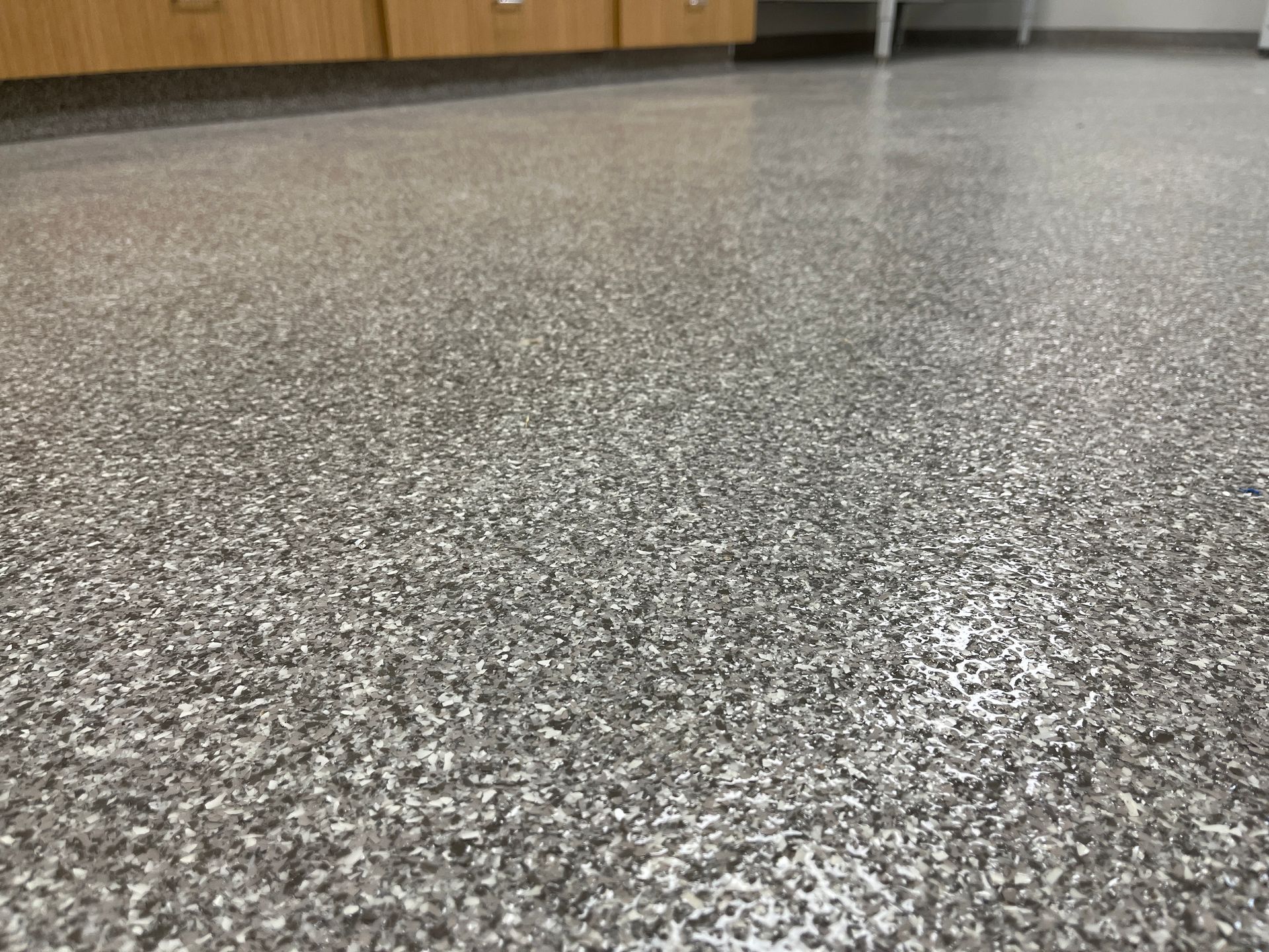 pigmented thin film epoxy with scattered 2MM vinyl chips